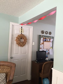 I have a heart punch I got a few years ago 50% off at Michael's...grab some scrapbook paper you like, and some baker's twine (even thread would work if you can't afford the twine!) and tape the hearts to the twine. Voila! Instant garland that costs next to nothing. ;)
